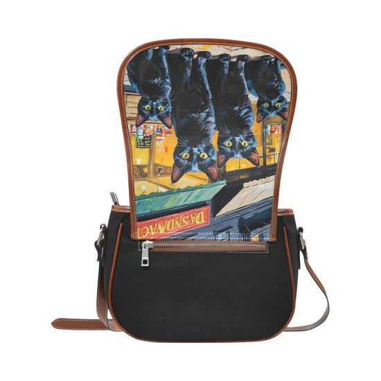Deze Market Kitties Saddle Bag is de perfecte metgezel voor kattenliefhebbers, waar ze ook gaan. Gemaakt van duurzaam, waterbestendig Oxford-materiaal, is deze tas gebouwd om lang mee te gaan. Er is een binnenvak met rits aan de achterkant en een ritsvak aan de achterkant. De verstelbare PU-leren band maakt het gemakkelijk om je waardevolle spullen mee te nemen.