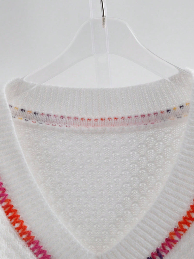 Deze pullover met V-hals heeft iets stretch en is gemaakt van Polyester waardoor hij heerlijk zit niet in de droger is ons advies