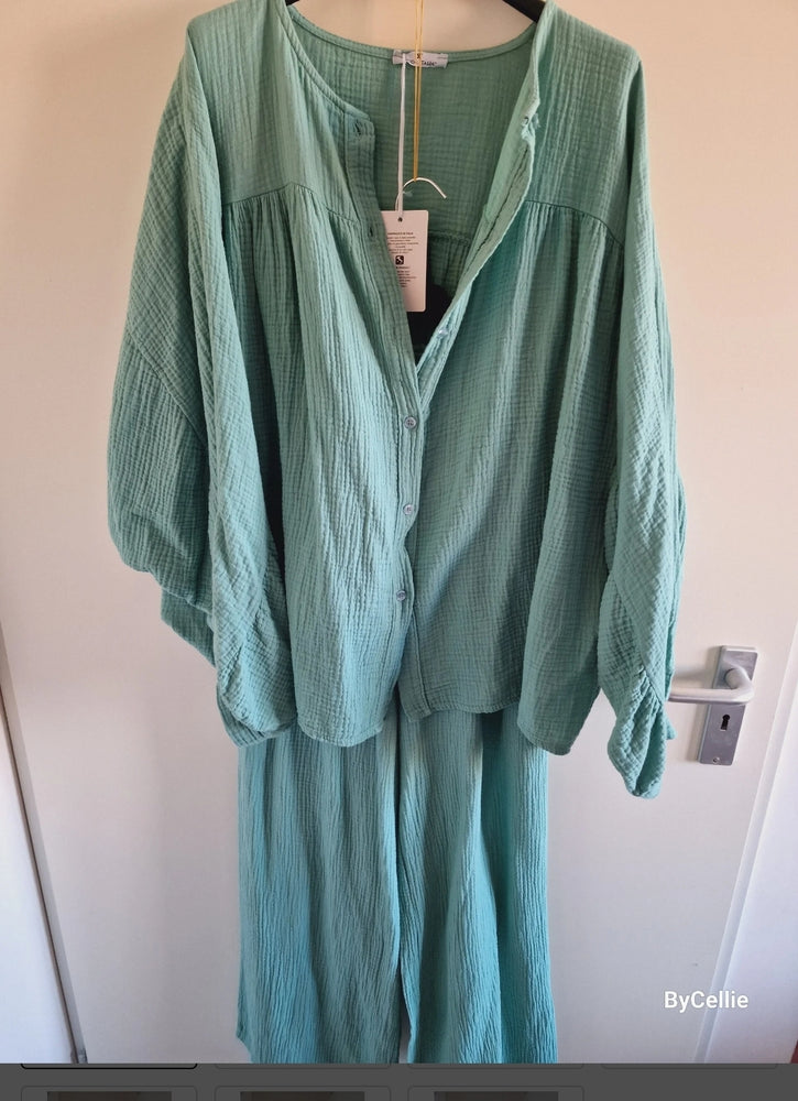 TIP Hij is leverbaar in 1 maat maar passend vanaf maat 38 t/m 42. Dus ja ook jij past hem. je kan hem als huispak gebruiken maar ok heel leuk met een hakje of een hippe sneaker eronder. Doe het topje open en een leuke shirt eronder en je bent ready to go!