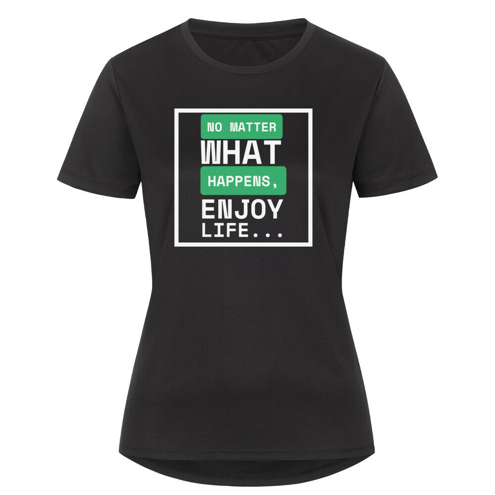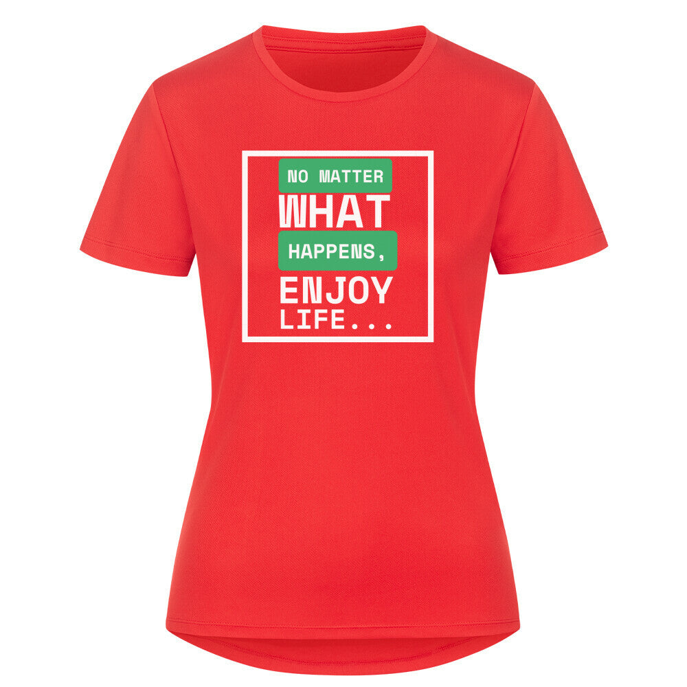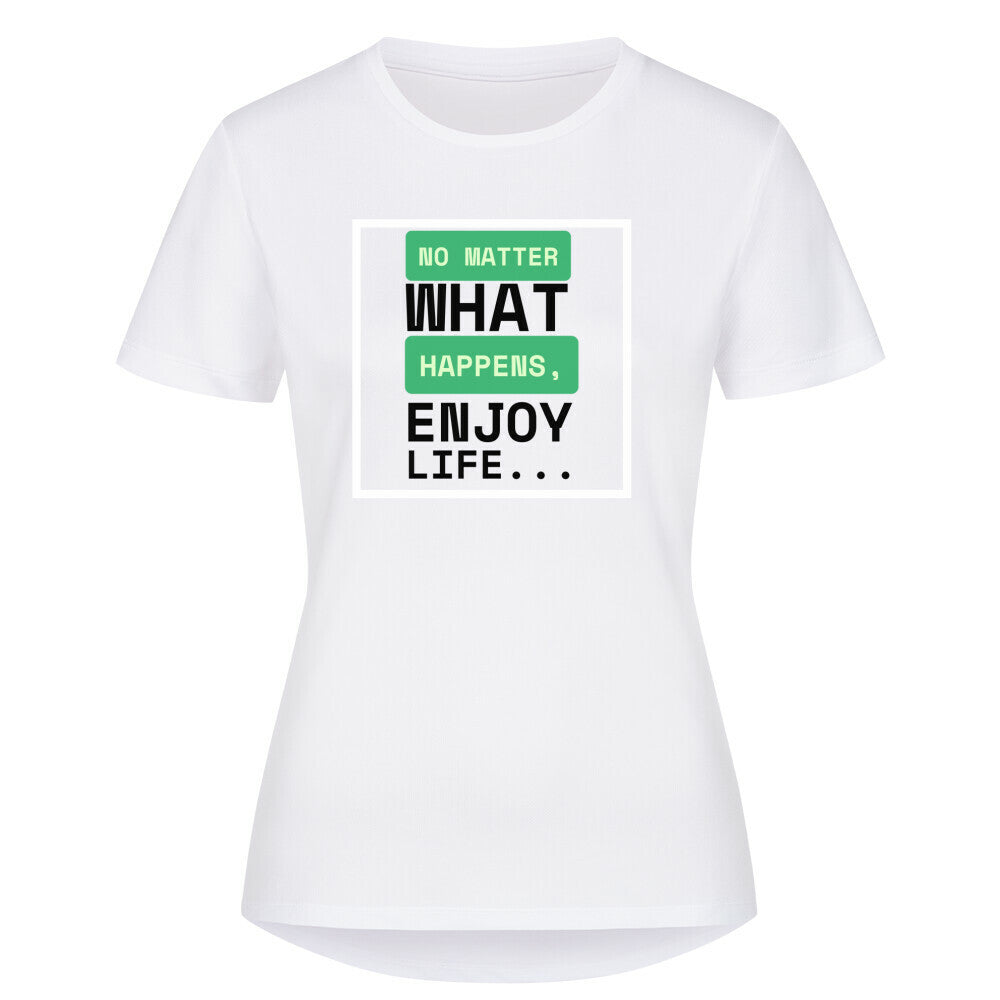 Dames t-shirt tekst• 100% recycled polyester• 140 GSM• Sports fitBinnenstebuiten wassen en print niet strijken Toleranz +/- 1 in XS S M L XL Breite 15.5 17.5 19 20.5 22...
